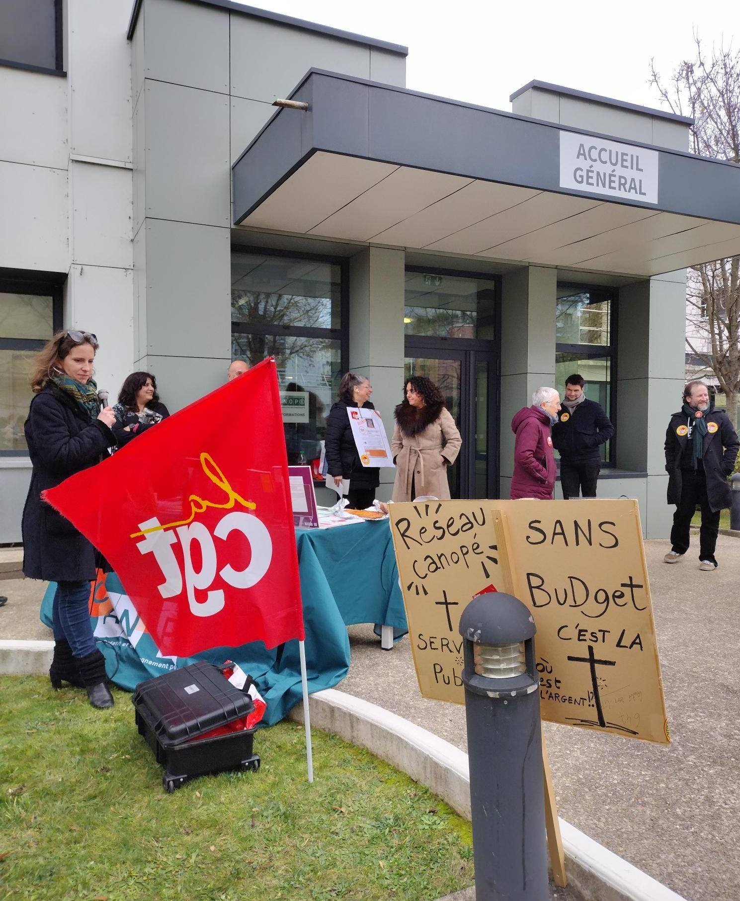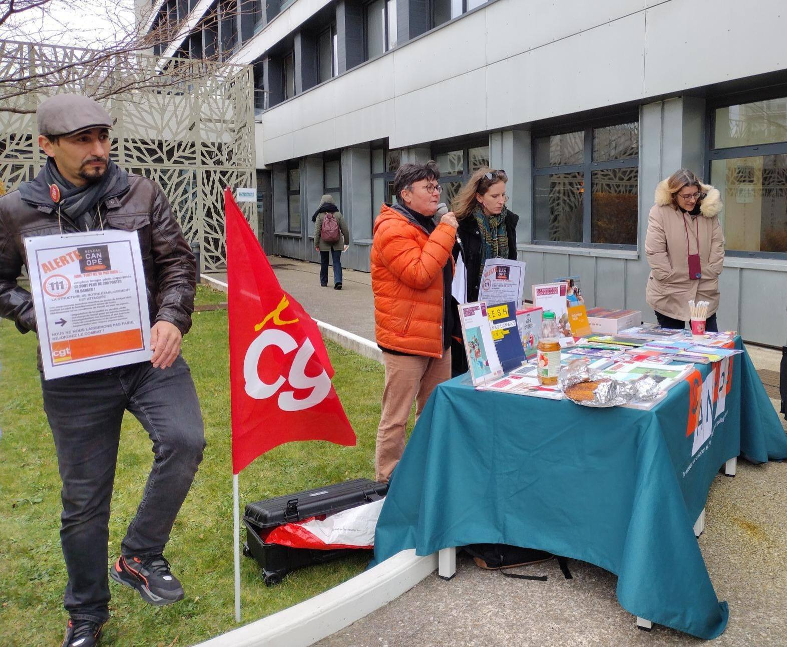 Nous étions aussi là pour le Conseil d'administration de Réseau Canopé, à Vanves, le 3 décembre 2025. Stand avec nos dernières productions avant la Transformation, tractage...